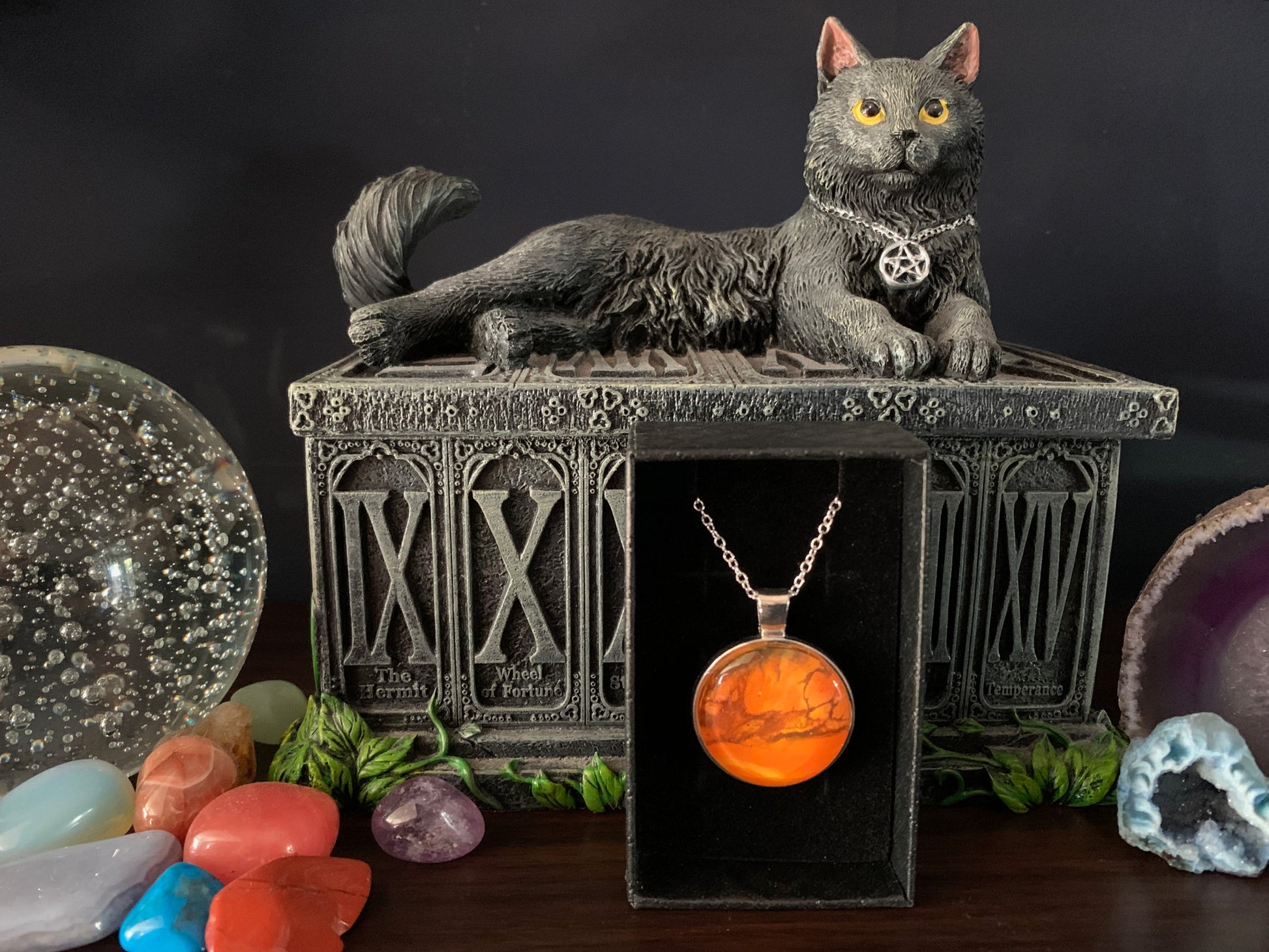 These are acrylic paint based designs, carefully selected for their intricate detail and evocative colour combinations. Each one is housed in a metal alloy case, glass cabochon and matching chain. These are the perfect piece of costume jewellery and make excellent gift items.