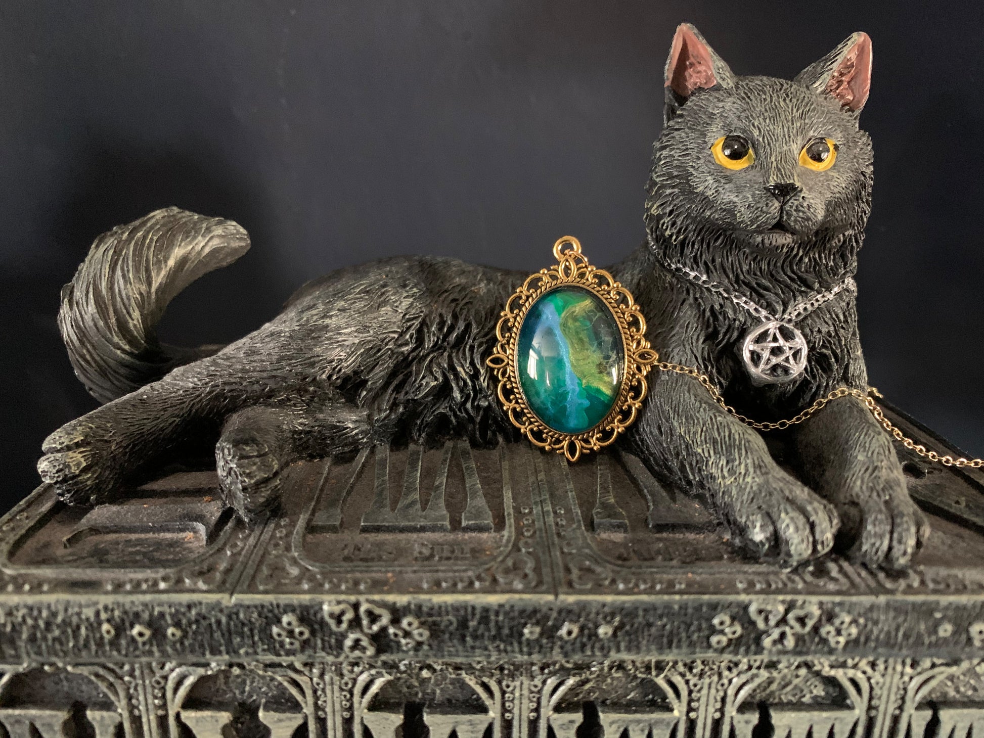 These are acrylic paint based designs, carefully selected for their intricate detail and evocative colour combinations. Each one is housed in a metal alloy case, glass cabochon and matching chain. These are the perfect piece of costume jewellery and make excellent gift items.