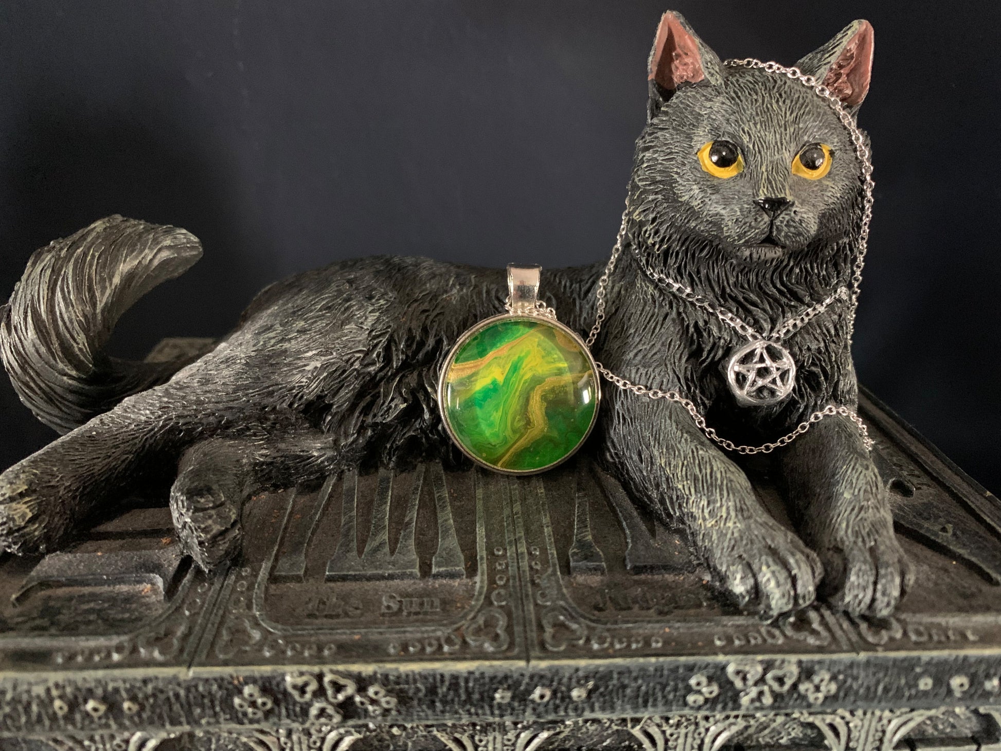 These are acrylic paint based designs, carefully selected for their intricate detail and evocative colour combinations. Each one is housed in a metal alloy case, glass cabochon and matching chain. These are the perfect piece of costume jewellery and make excellent gift items.